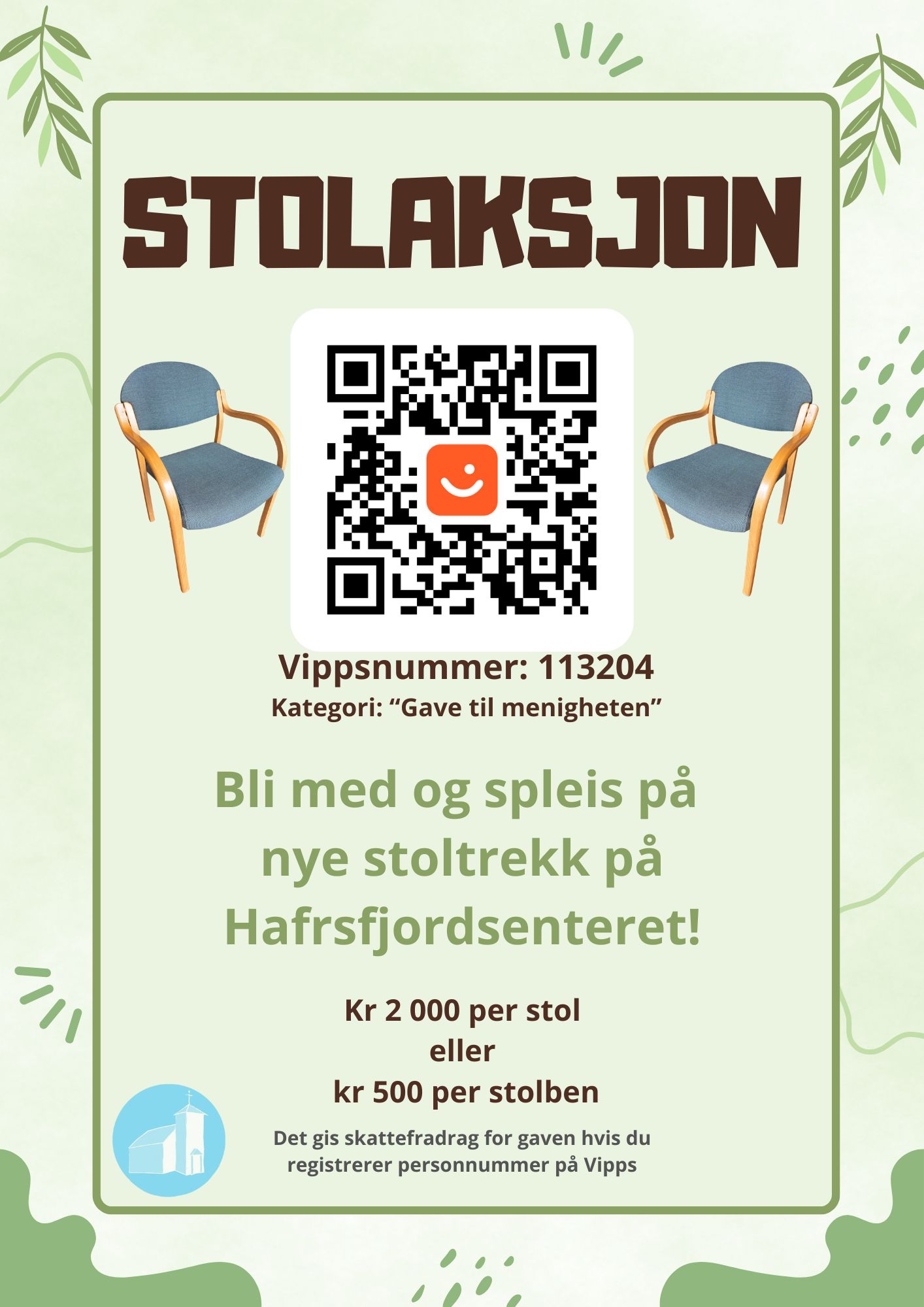 Ta kontakt med Hafrsfjord menighet, eller bruk Vipps-nummeret 113204, velg "Den Store Stolaksjonen 2025" for å gi ditt bidrag. Hver krone teller!