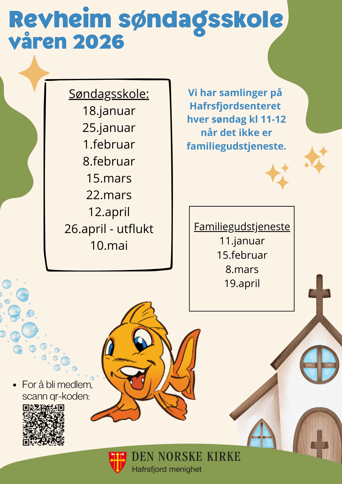 Søndagsskolen begynner kl 11. Vi synger både nye og gamle sanger, leker sammen, hører bibelfortellinger, ser på dukketeater og er sammen i kjekke formingsaktiviteter.